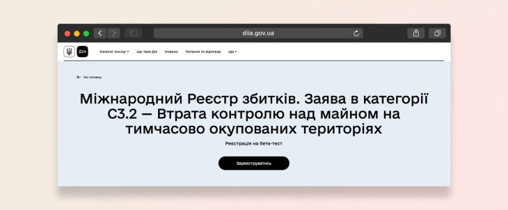 Запускаємо запис на бета-тест нової категорії для юросіб до міжнародного Реєстру збитків: C3.2 — Втрата контролю над майном на ТОТ. Це інструмент, що допомагає офіційно зафіксувати збитки від російської агресії. Ваша участь покращить сервіс і наблизить вашу компанію до майбутніх репарацій.
